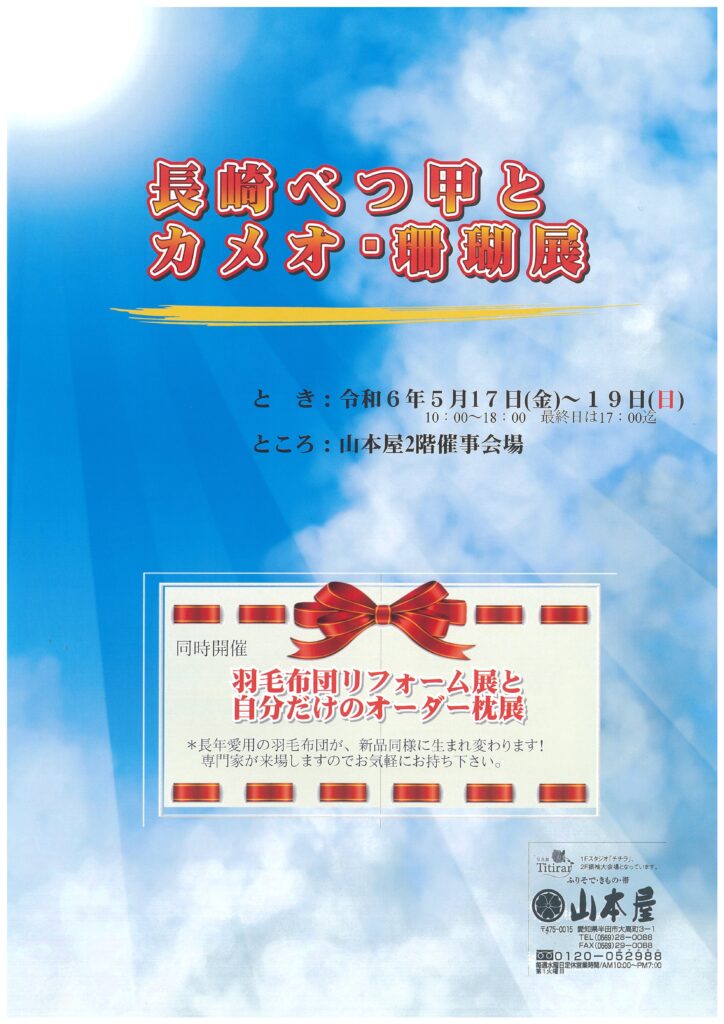とき:2024年(令和6年)7月19日(金)~21日(日) 10:00~18:00(最終日~17:00) ところ:山本屋2階催事会場 &nbs…
